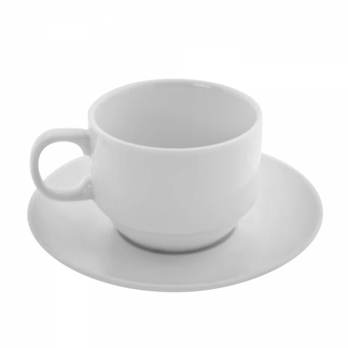 The classic vanilla Ten Strawberry Street BISTRO-10 6 oz.White Tea Cup and Saucer Set will complement the decor of any cafe or dining area, making it the perfect choice for hotels and caterers. This stylish cup fits gently in its saucer, and has a comfortable and sturdy handle. It is dishwasher, microwave and oven safe, making it convenient and efficient to use.