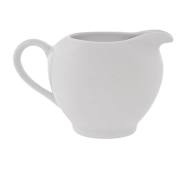 The porcelain Ten Strawberry Street Classic White RB0016 8 oz. Creamer is the perfect way to accessorize your table with elegance and style. This creamer is white and has a glossy finish that gives a brilliant sheen to your table top. It features a delicate yet sturdy handle giving it a refined look. It is also microwave and dishwasher safe.