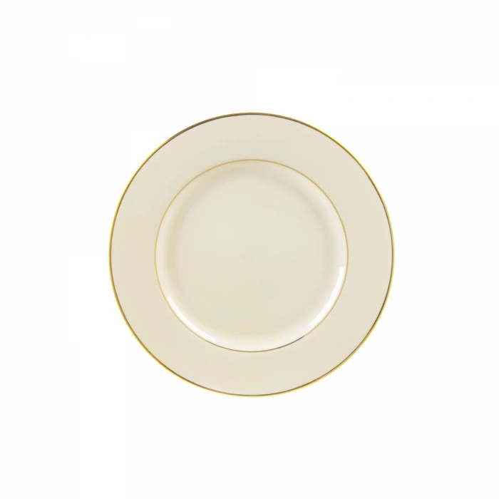For an alternative to classic white chinaware, the Ten Strawberry Street Cream Double Gold Line CGLD0005 6-3/4″ Bread and Butter Plate will add an elegant, original style to formal table settings. This cream colored plate has decorative gold lines that give it a touch of class. This plate is also dishwasher safe, but not recommended for microwave use.