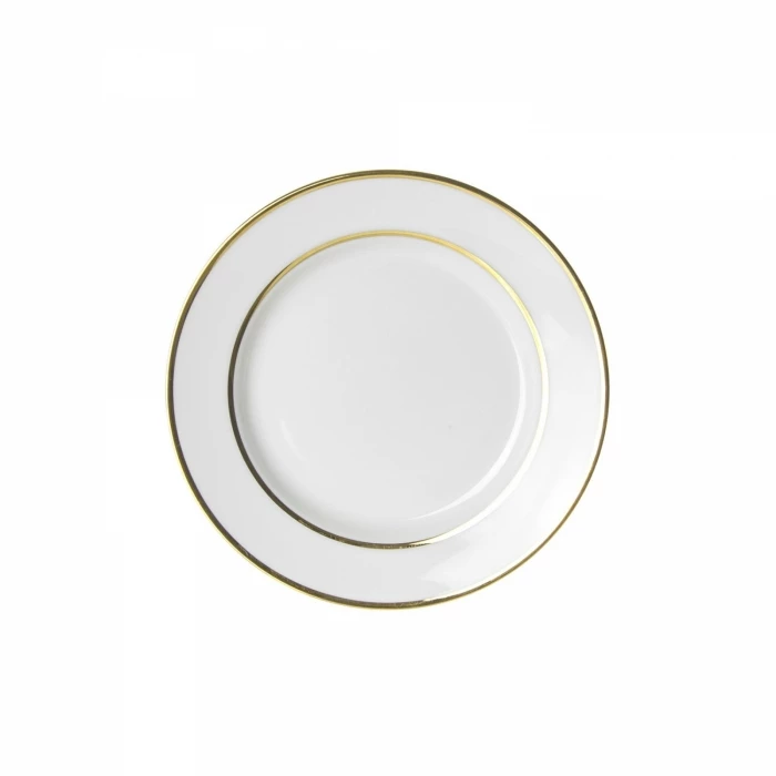 The Ten Strawberry Street Double Gold Line GLD0005 6-3/4″ Bread and Butter Plate will create formal ambiance on your dining table. This festive white plate, with shiny gold lines along the rims, will dress up your table with ease. This plate is lead free and dishwasher safe ensuring easy and efficient clean-up.