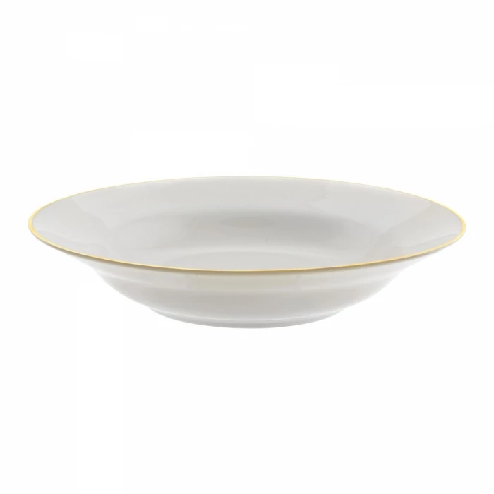 Perfect for any affair, the Ten Strawberry Street GL0003 10 oz. Gold Line Rim Soup Bowl is the epitome of elegance and style. This 10 oz. porcelain white bowl is lead free, and features a delicate gold line running along the rim of the bowl. It is completely dishwasher safe for quick clean-up.