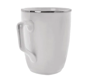 Trendy and stylish, the Ten Strawberry Street Lotus Silver Line LOTUS-28SL 10 oz. Square Mug is a delightful way to serve your guests their steaming hot drinks. This square mug, made of porcelain, will add drama and verve to your tabletop with its’ fine silver line along the rolled edge, that runs down along its angled handle.. This 10 oz. mug is also lead free and dishwasher safe, making it a valuable asset to any dining establishment.