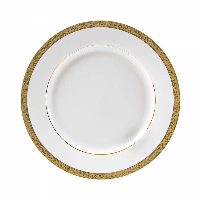 Adorned with a fanciful ornamental work along its rim, the 10 Strawberry Street PAR-1G Paradise Gold Dinner Plate 10-3/4″ adds a lovely and refined look to your table setting. This dinner plate is an eye-catching, versatile piece that complements a variety of serveware and dinnerware. Crafted from exceptionally durable porcelain, this dinner plate is dishwasher safe and resistant to heat, stains, and scratches.