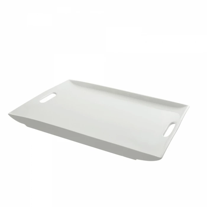 Perfectly sized for banquets and catered events, the 10 Strawberry Street WTR-20-15RECHNDL Whittier Rectangular Platter with Handles 19-7/8″ x 14-3/4″ is creates an impressive backdrop for plated presentations. Designed with a slanted rim and built-in handles, this rectangular platter adds a sleek and modern appeal while its white porcelain construction makes it oven ready and dishwasher safe.