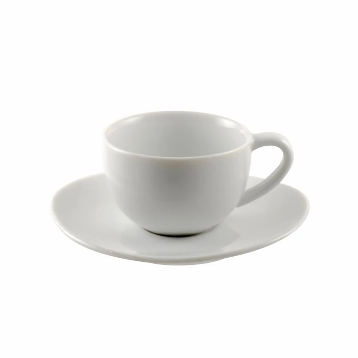Use the 10 Strawberry Street RVL0428 Royal Oval White Demitasse Cup and Saucer Set 4 oz. to serve your guests the perfect portion of espresso. The matching saucer including in this demitasse set is designed to conveniently hold sugar cubes and a coffee spoon. Combining functionality, elegance, and durability, this oval cup and saucer set boasts a classic white finish and is made from heat and stain-resistant porcelain.