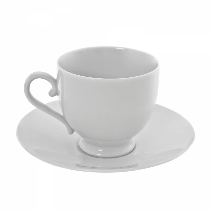 Add an elegant edge to your hot beverage service with the 10 Strawberry Street RW0010 Royal White Cup and Saucer Set 8 oz. This cup and saucer set has an attractive shape, smooth surface, and a classic white finish that is perfect for both casual and formal dining. Crafted from porcelain, this cup and saucer set looks delicate while being dishwasher safe and strong enough to endure high temperatures.