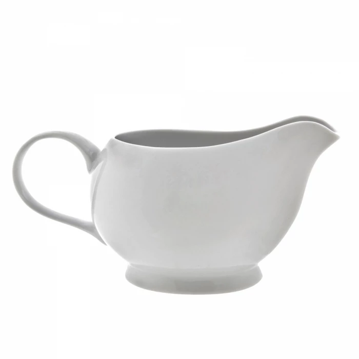 Primarily used for holding and serving gravy and sauces, the 10 Strawberry Street RW0025 Royal White Gravy Boat 6″ is also great for topping off pancakes and waffles with syrup. This gravy boat is designed with a contoured shape and easy-grip handle for comfortable pouring. Made from white porcelain, this lightweight gravy boat is microwave, oven, and dishwasher safe.