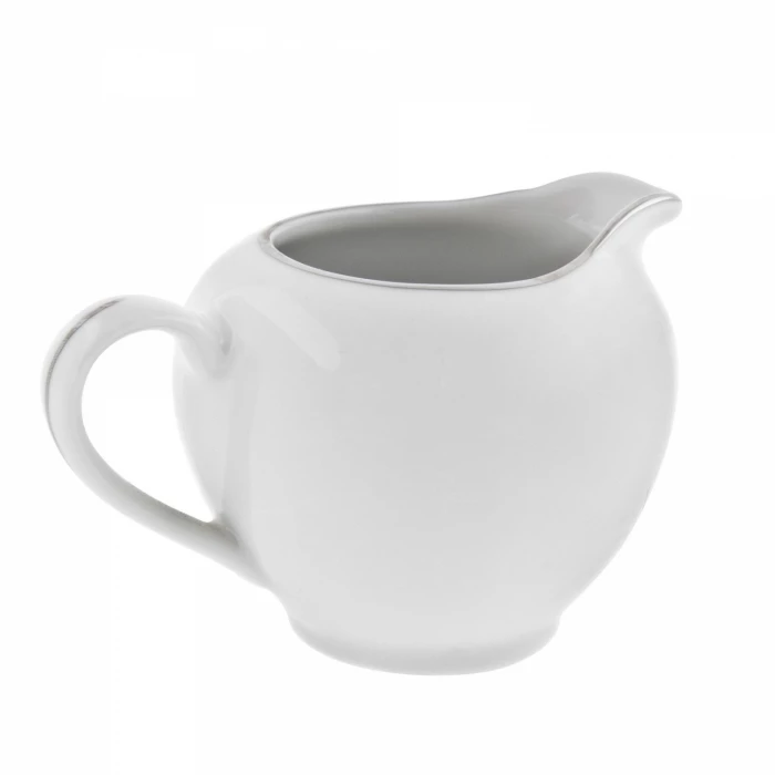 Perfect for tabletop use, the 10 Strawberry Street SL0016 Silver Line Creamer 4-3/4″ is a great addition to any restaurant, hotel, or cafe. Designed with an ergonomic handle and a well-defined spout, this creamer facilitates easy pouring while its silver rim adds a subtle flair to any table setting. Thanks to its white porcelain construction, this creamer has a delicate look but is strong enough to endure daily use.