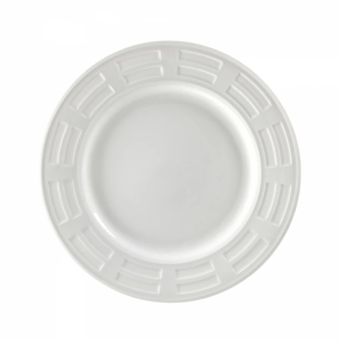 Provide your guests with an elegant dining experience with the 10 Strawberry Street SORR0001 Sorrento White Dinner Plate 10-1/4″. The crisp white finish and decorative embossed rim of this dinner plate highlights the color and texture of your food making it a great addition to restaurants, hotels, and cafes. Crafted from highly durable porcelain, this dinner plate is dishwasher safe and will withstand temperatures up to 500 degrees Fahrenheit.