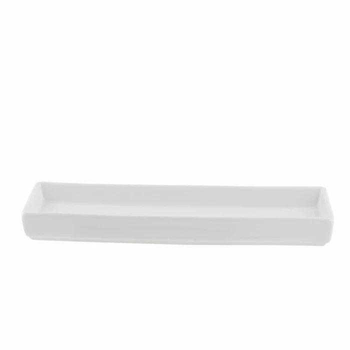 Add modern elegance to sliced fruits and olives by serving them on the 10 Strawberry Street WTR-39RECDSH Whittier Rectangular Platter 2-3/4″ x 9-3/4″. This platter boasts a sleek, modular shape and white finish that easily complements any table setting. Crafted from porcelain, this rectangular platter is dishwasher-safe and resistant to stains and scratches.