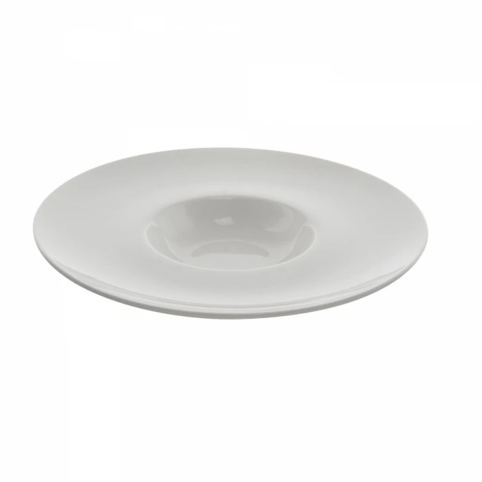 Use the 10 Strawberry Street WTR-11WIDERBWL Whittier Wide Rim Bowl 6 oz. for serving sauces, sides, and small appetizers. Sporting a shallow well and wide rim, this bowl has a modern yet elegant appeal that looks great as part of any table setting. Thanks to its bright white porcelain construction, this wide rim bowl delivers versatility and outstanding durability.