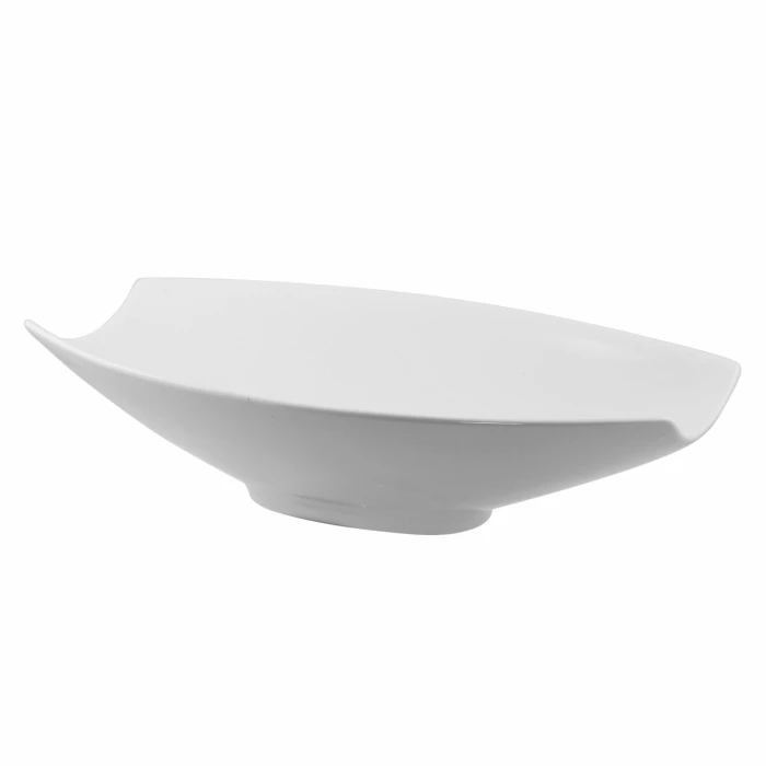 An excellent piece for your soup, side dish, and more, the 10 Strawberry Street WTR-14RECSAMBWL Whittier Rectangle Samurai Bowl 48 oz. is a great addition to your dinnerware collection. This samurai bowl is designed with clean lines, contoured body, and a barely visible foot adding a sleek and elegant appeal to any table setting. Exquisitely crafted from classic white porcelain, this samurai bowl is dishwasher safe, oven-ready, and stain resistant.