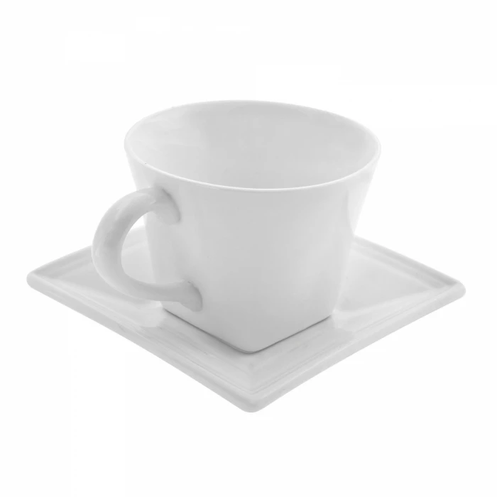 Impress your guests by serving your coffee, tea, and other hot beverages in the 10 Strawberry Street WTR-FLRSQCUP Whittier Square Flared White Cup and Saucer 8 oz. Boasting a crisp white finish and smooth surface, this cup and saucer set combines well with any dinnerware or serving piece. The matching square saucer is a great piece for serving cookies and biscotti or for holding a coffee spoon. Crafted from highly durable porcelain, this cup and saucer set is dishwasher safe, stain resistant, and will endure high temperatures.